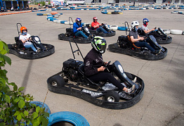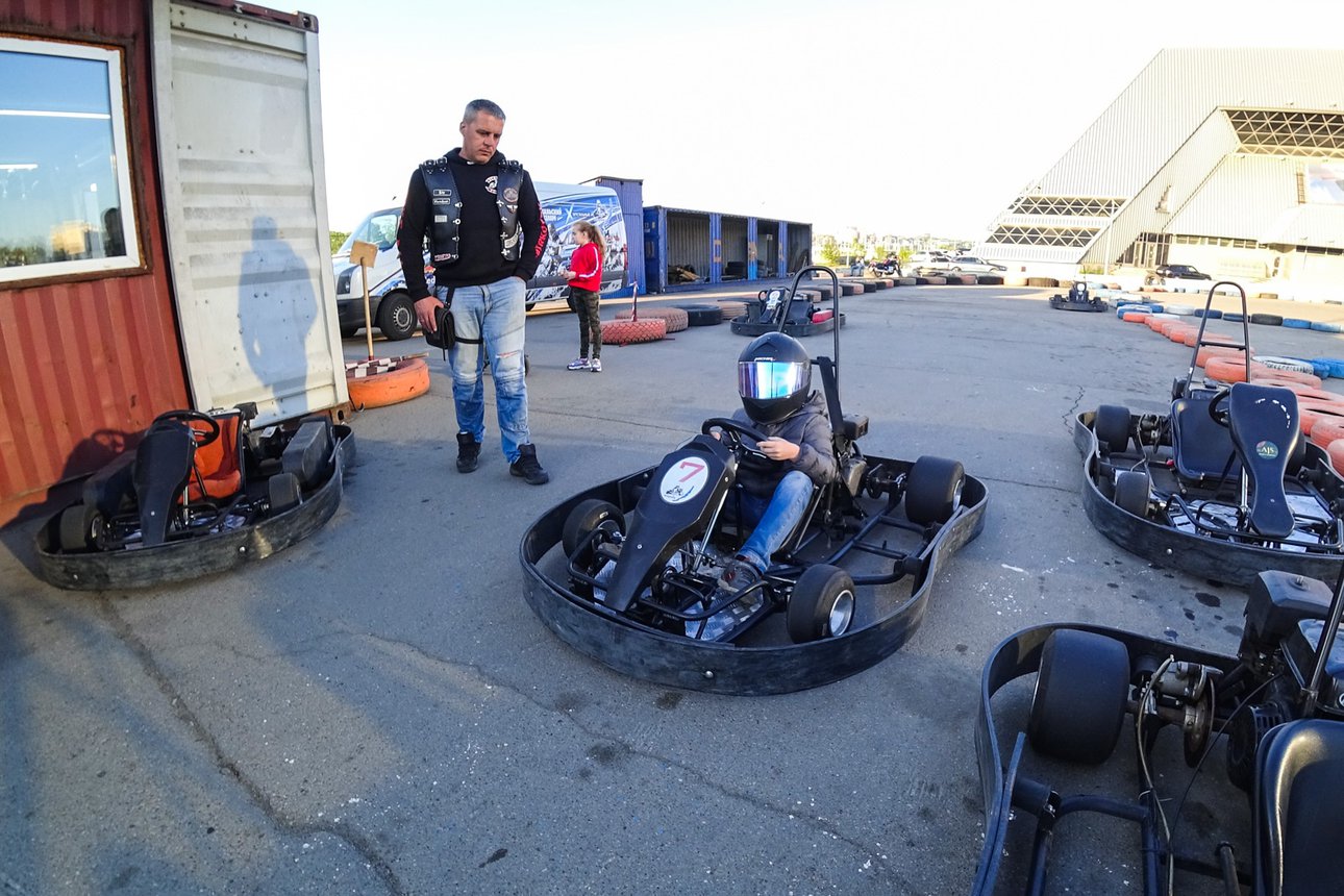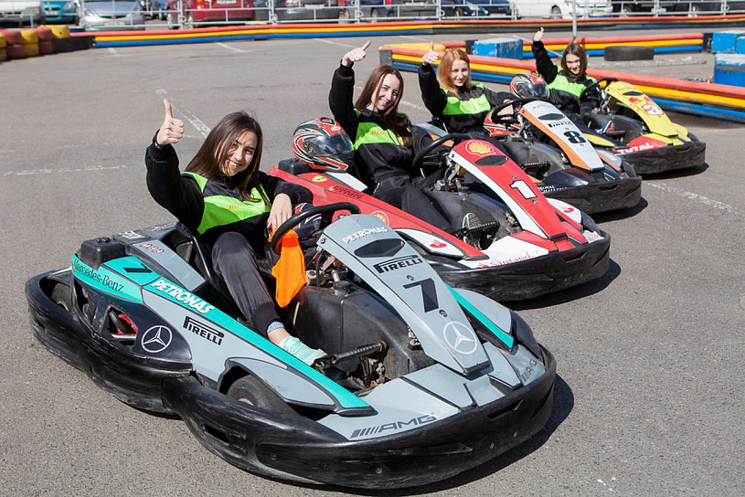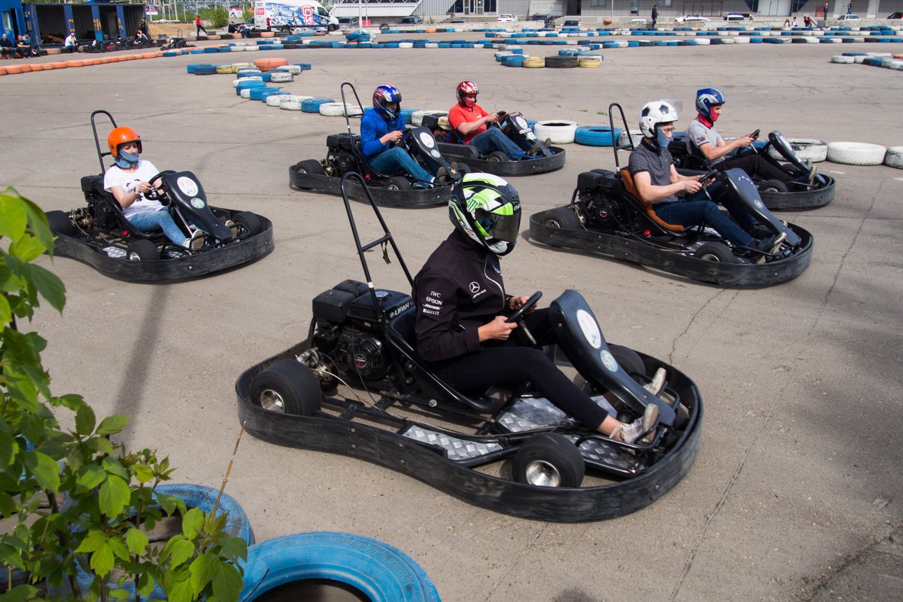 Погоняйте на мощных и быстрых картах по безопасной трассе длиной 400 метров. Максимальная точность управления картом достигается за счет качественного асфальтового покрытия. Трасса содержит участки с поворотами на 90 и 180 градусов, участки с длинными прямыми для разгона