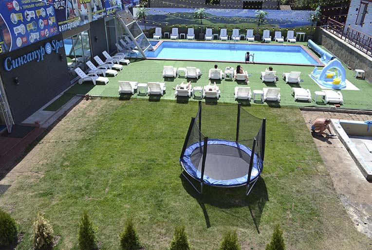 В одном месте целый комплекс услуг для общего посещения: финская сауна со вставками из гималайской соли; парная хаммам; бассейн под открытым небом со средней температурой воды +35 градусов; мини-открытый бассейн (купель) с водой +8 градусов; кафе-бар; детский бассейн (в летнее время); детский батут ( в летнее время); отдельные беседки до 8 чел с мангалом ( в летнее время). Дети до 7 лет бесплатно.