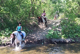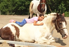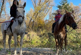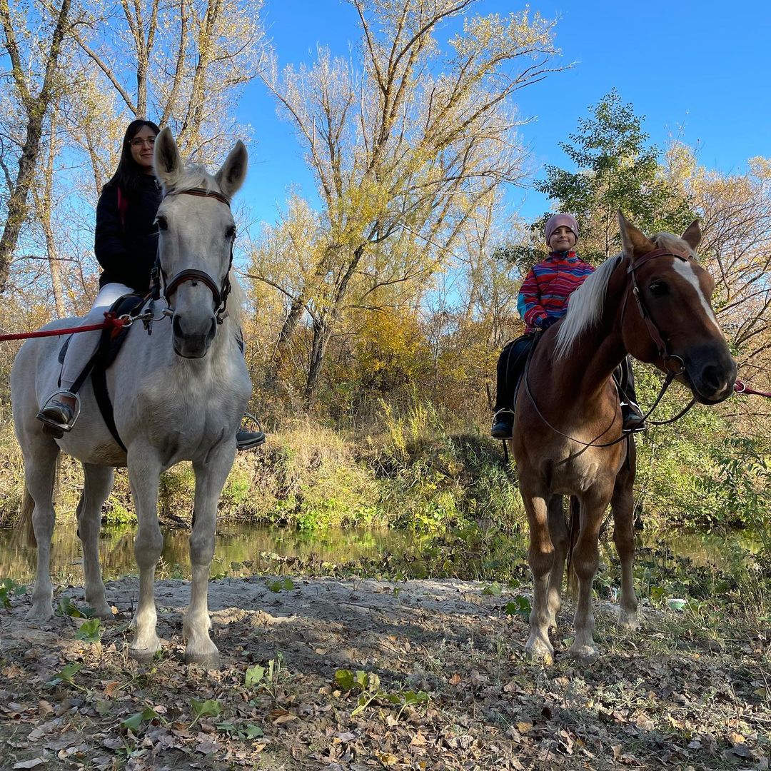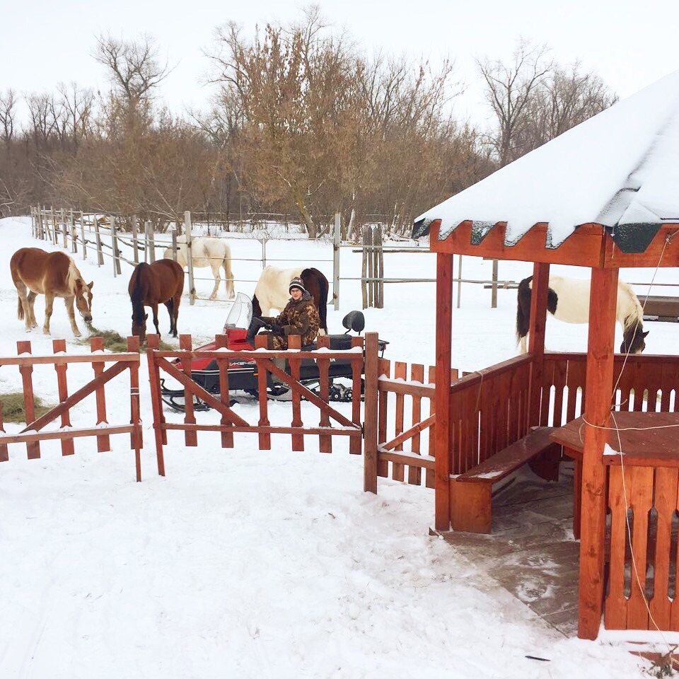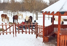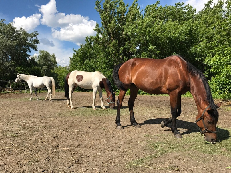 Конюшня находится на краю живописных полей и густого леса, чистейший воздух заставляет кружиться голову! Красивейшие места возле речки не дают пройти мимо! Приехав сюда, Вы можете насладиться всеми прелестями природы, к тому же нет посторонних мешающих людей! Садясь в седло, как будто вырываешься из привычной жизни и отдыхаешь и телом, и душой! А общение с добрыми и благородными животными - лошадьми - дарят дополнительный заряд хорошего настроения! Занятия проводятся на большом кругу, в центре которого левада с гуляющими лошадками, или же рядом на корде. В нескольких метрах течет речка, и вот уже начинается лес! Все лошади здоровы, сыты, ухожены, всегда чистые ( есть специальный пылесос для лошадок!). Амуниция в отличном состоянии: постоянная обработка седел и уздечек, нет разрывов или ржавчины, плюс все чистое! Помимо лошадок есть и другие животные! Кролики, фазаны, голуби, козы, дружелюбные собачки алабай и хаски.! С ними можно сфотографироваться, покормить чем-то вкусненьким!