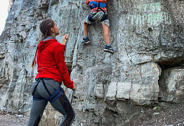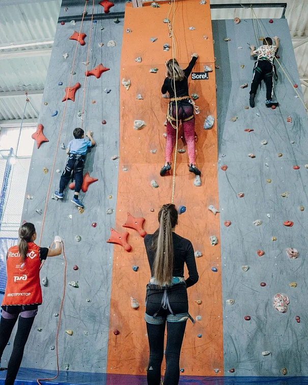 Скалолазание для взрослых и детей; Групповые и индивидуальные занятия с инструктором; Дни Рождения/Праздники/Подарочные сертификаты. Находится в здание Батутного центра "Небо".