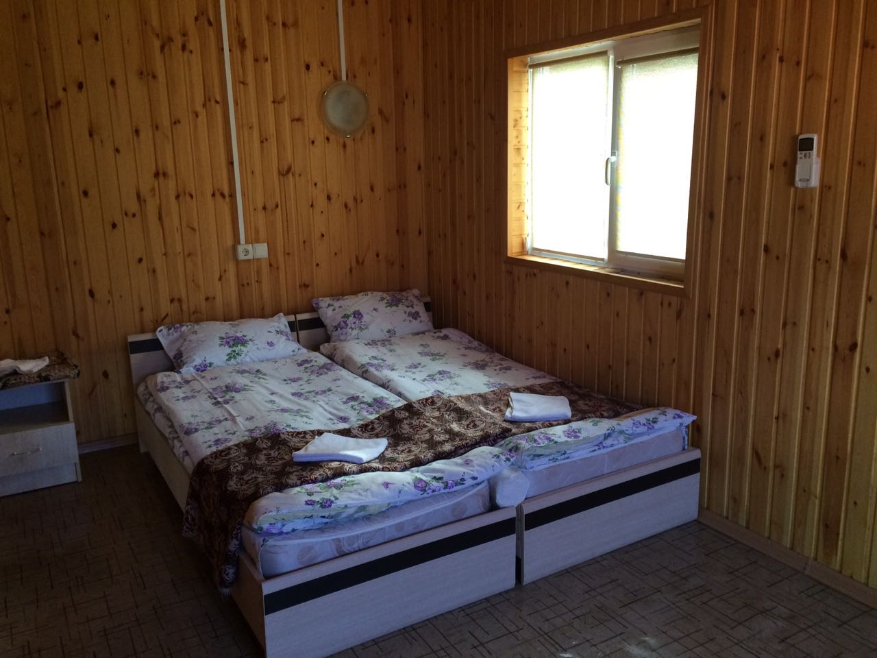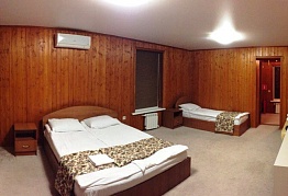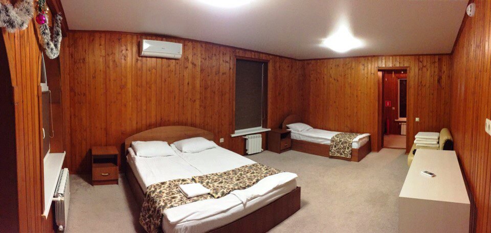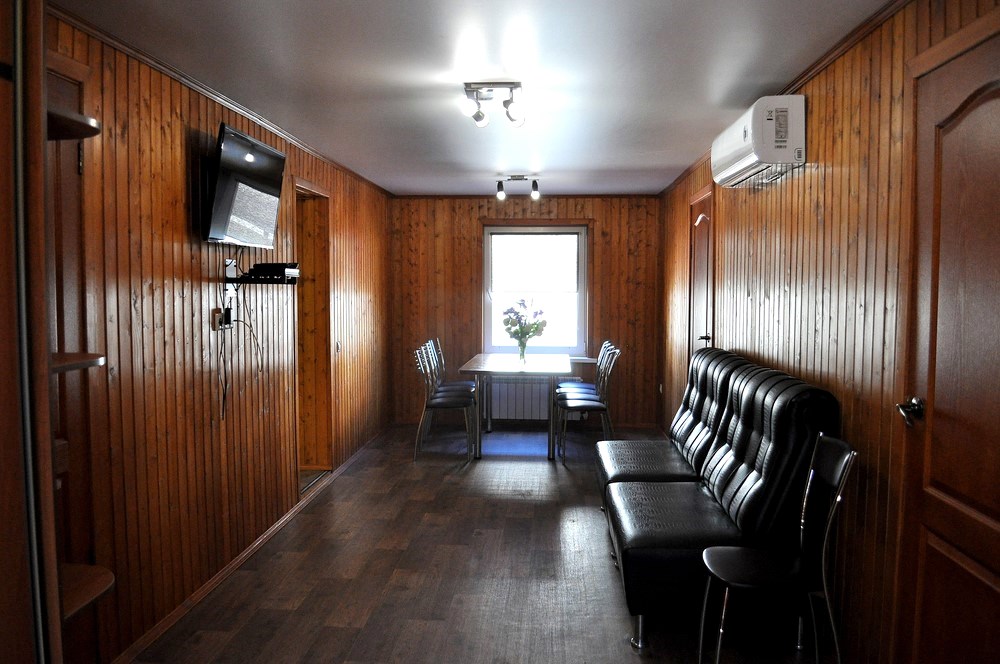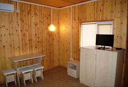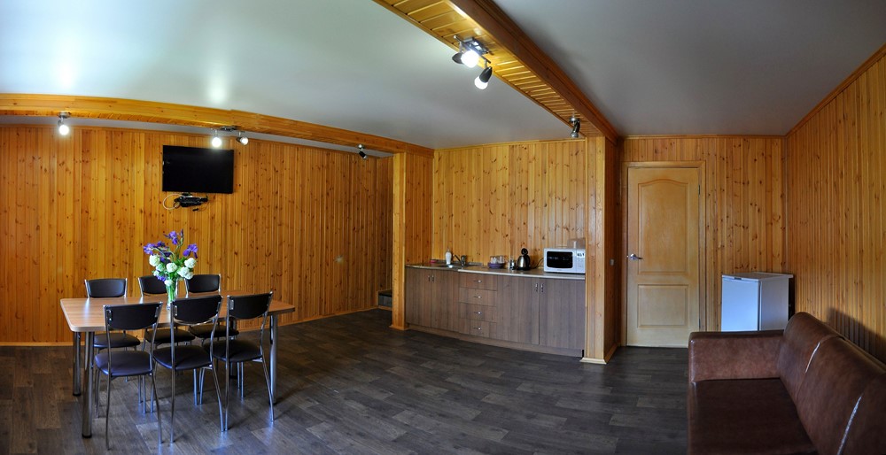 На первом этаже таунхауса большой холл (стол, стулья,мини кухня, диван, телевизор, санузел), на втором этаже две раздельные спальные комнаты, в каждой из которых по две односпальные кровати! Все домики с удобствами и включают в себя: кондиционер, TV, WI-FI, холодильник, чайник, СВЧ печь, посуда, санузел с горячей водой (одноразовые зубные щетки, паста, мыльные принадлежности), фен, постельное белье, полотенца, шкаф-купе, балкон! 4-х местный летний домик (одноэтажный): На турбазе имеется 5 домиков данного типа! 4 домика с двумя смежными спальными комнатами, в каждой из которых по две односпальные кровати, а также один домик с одной спальной комнатой, в которой две односпальные кровати и двухместный раскладной диван! Все домики с удобствами и включают в себя: кондиционер, TV, WI-FI, холодильник, чайник, посуда, санузел с горячей водой (одноразовые зубные щетки, паста, мыльные принадлежности), фен, постельное белье, полотенца, небольшой шкаф-тумба! Двухэтажный 10-ти местный VIP домик в нем есть: на первом этаже VIP дома большой холл (стол, стулья,мини кухня, диван, телевизор, санузел), две раздельные спальные комнаты, в каждой из которых двухспальная кровать, на втором этаже две раздельные спальные комнаты, в каждой из которых двухспальная кровать и односпальная! Домик с удобствами и включает в себя: кондиционер, TV, WI-FI, холодильник, чайник, СВЧ печь, посуда, санузел с горячей водой (одноразовые зубные щетки, паста, мыльные принадлежности), фен, постельное белье, полотенца, шкаф-купе, балкон!