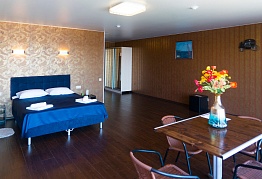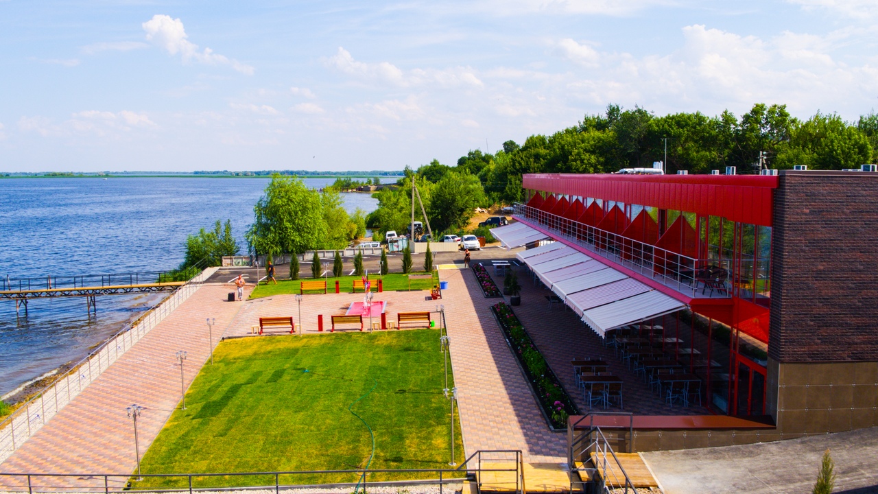 Большие, удобные номера; Завтраки; Ресторан на 150 мест и летнее кафе на 80 мест с панорамным видом на Волгу; Проведение корпоративов, свадеб, банкетов, а также бизнес-конференций, тренингов; Возможность использования мультимедийного экрана 2*4;