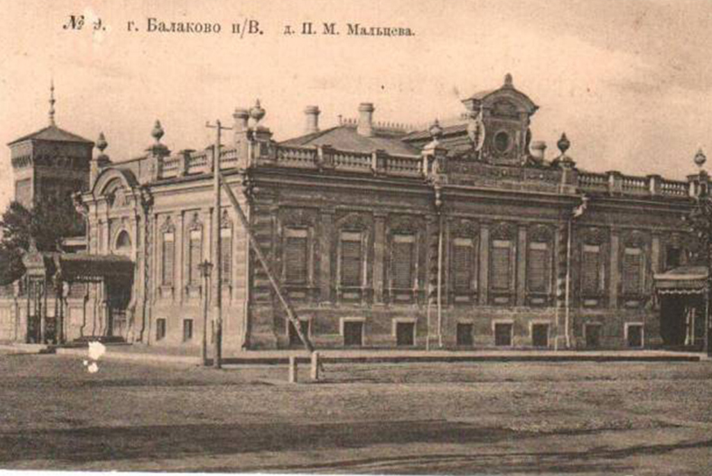 Особняк Паисия Мальцева в наше время музей-усадьба, является одной из основных достопримечательностей города Балаково. Паисий Мальцев известен русской земле, как купец первой гильдии, коллекционер и меценат. Как гласит предание, особняк этот строился для возлюбленной Паисия Мальцева – француженки из знатной богатой семьи, которая в ответ на предложение Паисия Михайловича переехать жить в Балаково поставила ему условие: построить для неё дом не хуже того, что был у её отца. Настоящий дворец, окружённый сиреневым садом, возвёл П.М. Мальцев, но француженка ему всё же отказала, и прожил он в безответной любви во Франции лет двадцать. В Балаковской усадьбе жил управляющий П.М. Мальцева, а сам хозяин приезжал в неё лишь два-три раза. На приусадебном участке до сегодняшнего дня существуют аутентичный сад сирени, конюшня и каретная. Забор и ворота участка также являются оригинальными. Миллионер приобрел свою усадьбу в 1886-м году. Здание усадьбы было построено в 1880-х гг. по проекту одного из видных архитекторов того времени Франца Иосифовича Шустера. Помимо особняка в усадьбе находился сиреневый сад, конюшня, прачечная, дом для работников с хозблоком и оригинальная ограда с двумя литыми воротами. Фасады особняка – библиотеки выполнены в стиле западноевропейского барокко. Они дробны, в них часто чередуются оконные проёмы со строгими наличниками, верхняя часть которых украшена античными мужскими масками. Дом отделан затейливым аттиком, балюстрадой и урнами, выполненными в виде древнегреческих сосудов. Поражает удивительная гармония уличных и дворовых фасадов дома, тонкое слияние воедино элементов барокко, классицизма и даже модерна в украшении интерьера. Однако, спустя некоторое время, хозяин владения решил дополнить его некоторыми архитектурными пассажами. В советское время в усадьбе П.М. Мальцева располагался уездный райком РКП(б), библиотека, милиция, позже особняк занял Дом пионеров, а позднее Дом творчества. С 1995 г. усадьба является памятником архитектуры федерального значения. С 1998 года по 2008 год в главном доме усадьбы велись реставрационные работы, в ходе которых были восстановлены кровля, фасады здания, интерьеры помещений 1 этажа, частично отремонтированы подвальные помещения. Одно время тут располагалась приемная губернатора Саратовской области Павла Ипатова.
