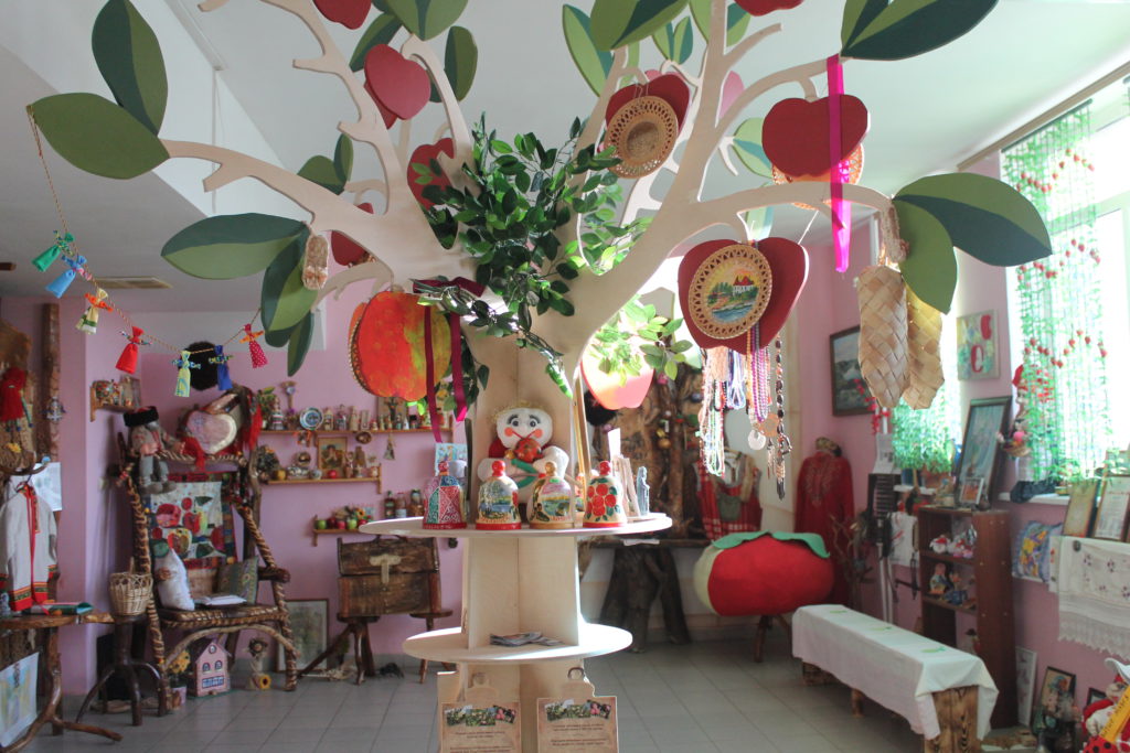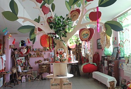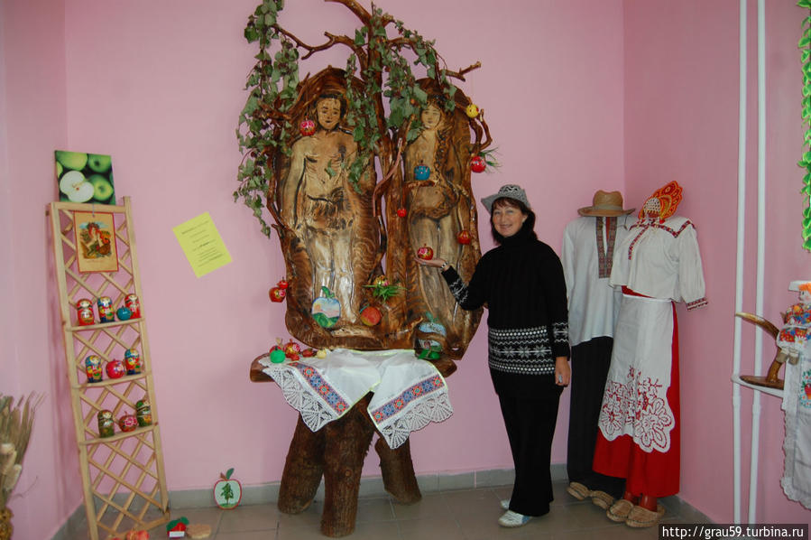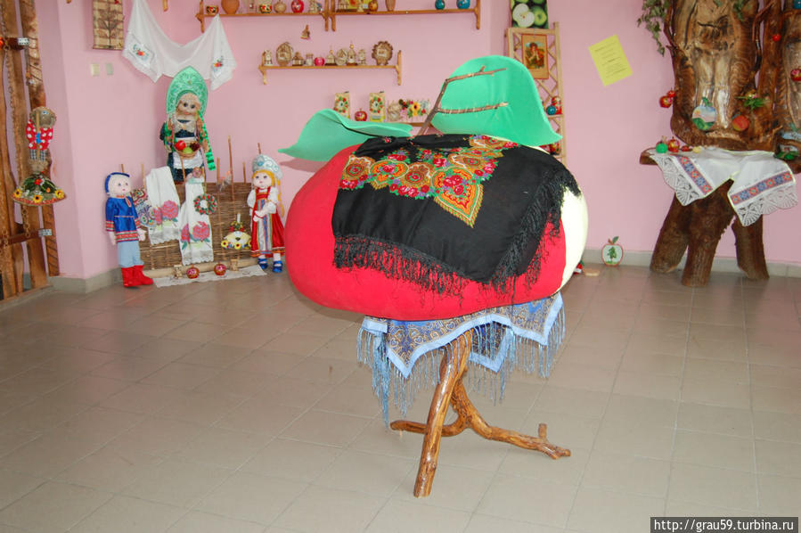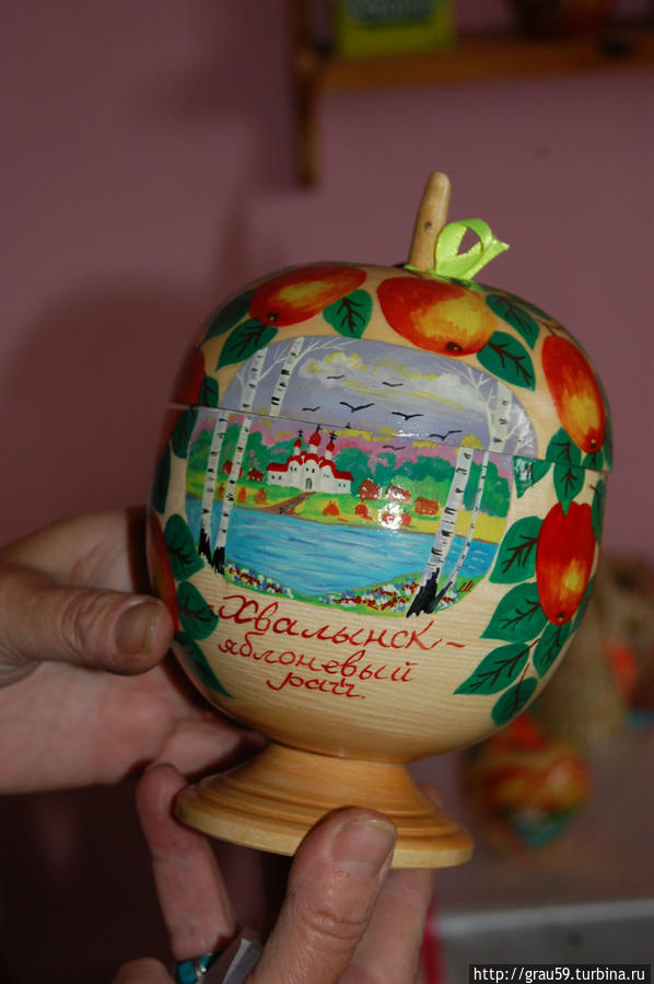 Музей Хваленого Яблочка - визитная карточка города Хвалынск. Он находится в центре города, в здании дворца культуры. В музее вы увидите выставку яблок в самых разных видах творчества. Здесь вас угостят яблочками, натуральным соком, Мастер научит вас и ваших детей делать обереги и сувениры из натуральных природных материалов. Вам предложат перевоплотиться и примерить народный костюм хвалынской красавицы. Волшебная яблонька исполнит желания, вы узнаете от хозяйки музея, почему он называется хваленым. Сколько сортов яблок в Хвалынске, почему яблоки не тонут в воде, за какие качества яблоки получили первую премию в Париже и многие другие секреты вам откроют в музее Яблочка. Продолжительность экскурсии 40 мин. Рекомендовано взрослым и детям без ограничения. Музею всего несколько лет от роду. Никаких привычных для музеев фотографий и окаменелостей здесь не наблюдалось, Рисунки детей, вышивка, поделки из дерева и других природных материалов скорее напоминали выставку народного творчества на яблочную тематику. Но яркие краски и вдохновенный рассказ нашего добровольного гида по музею поднимали настроение, несмотря на хмурую, пасмурную и холодную погоду на улице.