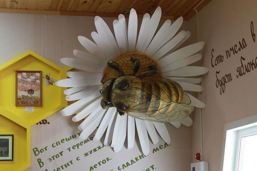 Музей Пчелы представляет собой двухэтажное деревянное здание в форме улья с шестигранными окнами и дверьми расположен на территории туристического комплекса "Солнечная поляна" в Национальном парке "Хвалынский". Особенностью этого музея является сложное модульное сооружение в виде гигантского улья Дадан, то есть классического, всем знакомого улья с рамками. Название свое ульи такого типа получили в честь их изобретателя, французского пчеловода Шарля Дадана. Музей Пчелы по сути это первый этаж двуэтажного здания, общей площадью 170 квадратных метров. В этом удивительном музее можно познакомиться с образом жизни пчелиных семей. Эти удивительные летающие насекомые живут в сложной многоуровневой системе, о которой нужно знать каждому, чтобы осознать их значимость в природе. Посетителям расскажут о жизни диких пчел, продемонстрируют редкий экспонат пчелы, застывшей в янтаре 100 миллионов лет назад, и модели ульев, в которых держали пчел в Древней Греции, Риме и в странах Латинской Америки. Центром музея является художественная композиция «Соты», изображающая жизнь пчелиной семьи. Музей Пчелы - это объемный информационный комплекс, интересно рассказывающий посетителю о жизни пчелиной семьи. Встроенные телевизоры оживляют информацию и делают ее более доступной для посетителей любой возрастной категории.