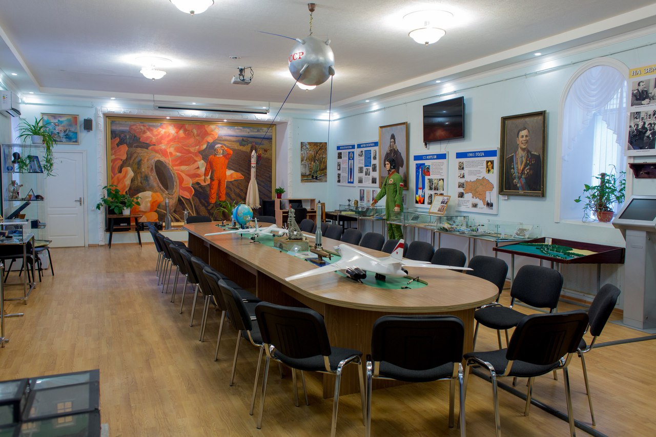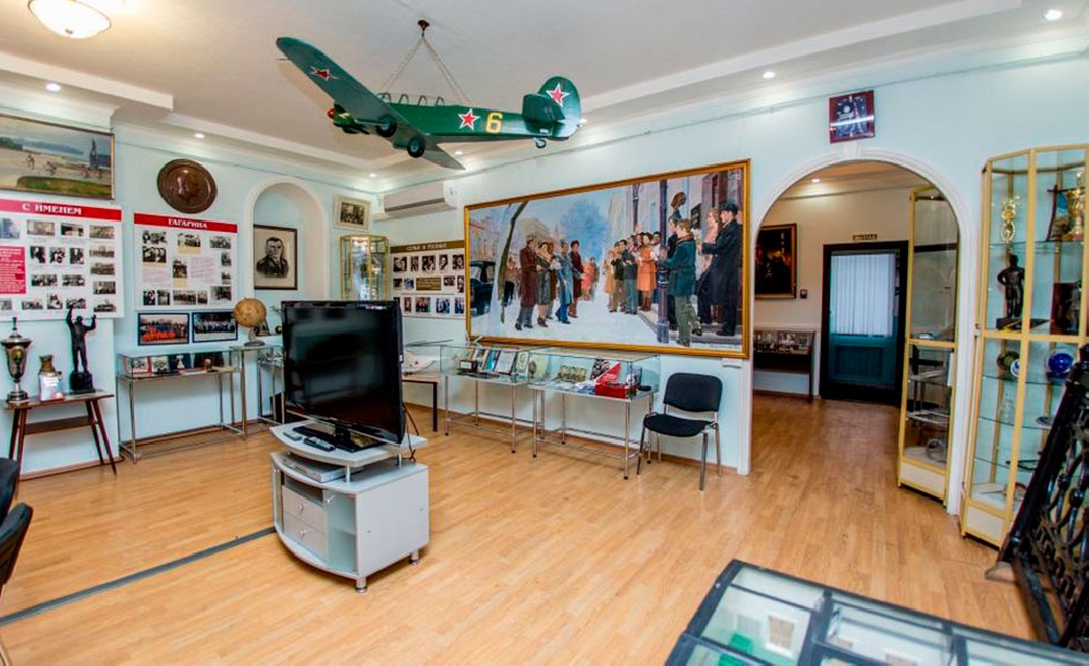 Музей открыт 5 января 1965 года к приезду первого космонавта планеты и его супруги в Саратов на 20-летие Саратовского индустриального техникума, в котором Юрий Гагарин учился с 1951 по 1955 гг. После гибели прославленного лётчика-космонавта в 1969 году техникуму было присвоено его имя. Также в нише в стене здания перед входом в колледж был установлен бронзовый бюст Гагарину. В экспозиции музея представлены около 1400 экспонатов. Экспозиция постоянно пополняется за счет постановки на учет экспонатов, хранящихся в фондах музея. За активную работу по патриотическому воспитанию молодежи общественному музею Ю.А. Гагарина при Саратовском индустриально-педагогическом техникуме в 1985 году Министерством культуры РСФСР было присвоено почетное звание «Народный музей». За время существования музея его посетило 187 тысяч человек. В музее ежегодно проводится около 160 экскурсий и мероприятий. Музей обладает бесценной коллекцией материалов, связанных с именем Ю.А. Гагарина. Она состоит из подлинных документов, фотографий, вещей, связанных с именем Колумба Вселенной. Прежде всего – это личное дело Юрия Гагарина, включающее в себя ряд документов, написанных его рукой, характеристику Гагарина, выписку из ведомости о его успеваемости и другие раритеты. В музее хранятся учебники, научно-популярные и художественные книги из библиотеки Саратовского индустриального техникума, которые читал Ю. Гагарин. В книги вложены формуляры, которые украшает подлинная роспись Гагарина. Среди экспонатов музея – подлинный судейский свисток Юрия Алексеевича, модель самолёта Як-18, отлитая Гагариным в подарок инструктору Саратовского аэроклуба, фрагмент обшивки самолёта, на котором первый космонавт совершил свой последний полёт вместе с лётчиком Серёгиным. В экспозиции музея представлены в том числе написанные Гагариным заявление на имя директора с просьбой зачислить его в техникум и автобиография, различные студенческие документы, письма. Всего фонд музея насчитывает более семи тысяч единиц хранения. Главная экспозиция "От литейщика – до космонавта" рассказывает об учёбе Гагарина в саратовских техникуме и аэроклубе, парашютной подготовке первого отряда космонавтов на Энгельсской земле. Отдельный раздел посвящён приездам Юрия Алексеевича и представителей его семьи в Саратов. К 70-летию со дня рождения космонавта в музее появились разделы "История отечественной космонавтики" и "История учебного заведения