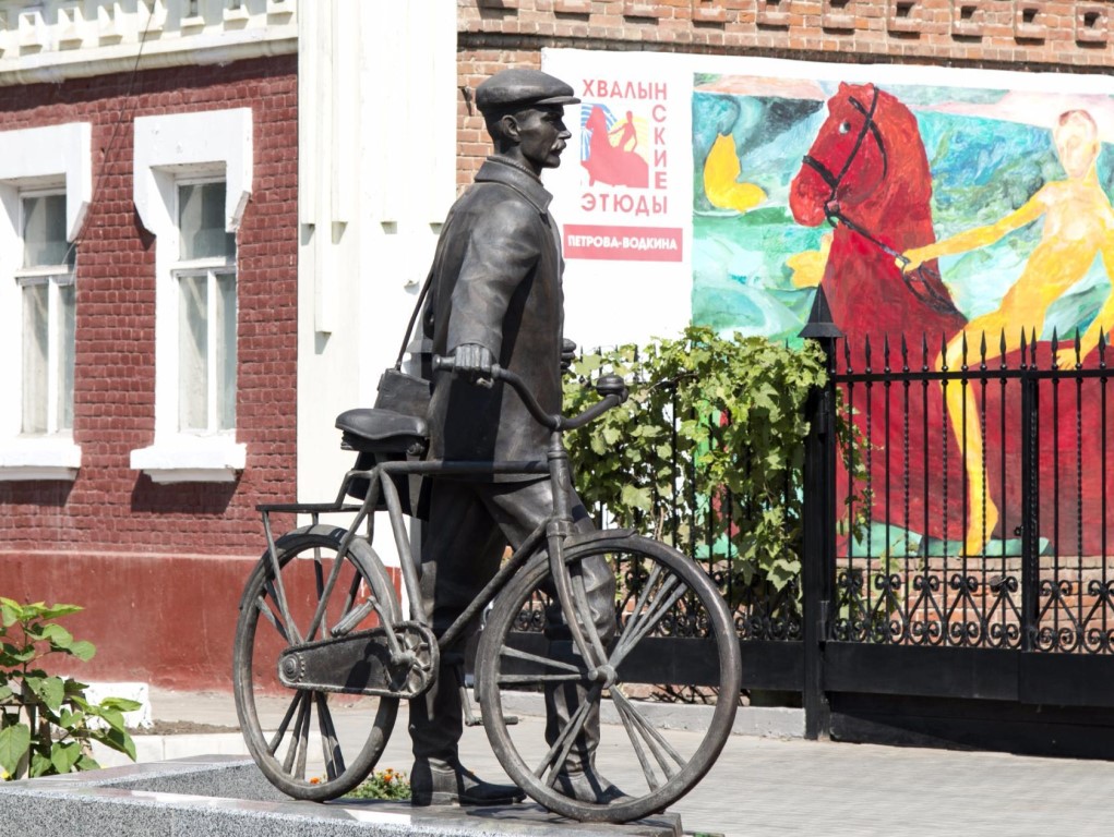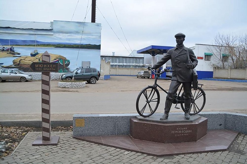 27 августа 2016 в Хвалынске Саратовской области открыли памятник знаменитому художнику Кузьме Петрову-Водкину. Торжественная церемония открытия памятника знаменитому художнику Кузьме Петрову-Водкину стало главным событием фестиваля «Хвалынские этюды Петрова-Водкина». Памятник установили у здания картинной галереи имени К.С. Петрова-Водкина. Автор скульптуры саратовец Андрей Щербаков. В его композиции знаменитый художник, уроженец Хвалынска стоит с велосипедом в центре Хвалынска лицом к картинной галерее, за плечом у мастера висит этюдник. Перед ним верстовой столб с надписью "Мюнхен 1843 версты". Такое расстояние 23-летний живописец преодолел на велосипеде, отправившись в начале прошлого века в заграничное путешествие и добравшись до Германии. Чтобы попасть в Европу, Кузьма Петров-Водкин подрядился совершить велопробег из Санкт-Петербурга в Париж. Второй частью музейного комплекса посвященного великому художнику, является Дом-музей К.С. Петрова-Водкина - полубревенчатый дом, уникальный архитектурный памятник, уютно расположился на пересечении улиц В.Ленина и М.Горького в Хвалынске. Дом принадлежал родителям и семье художника до 1943 года.