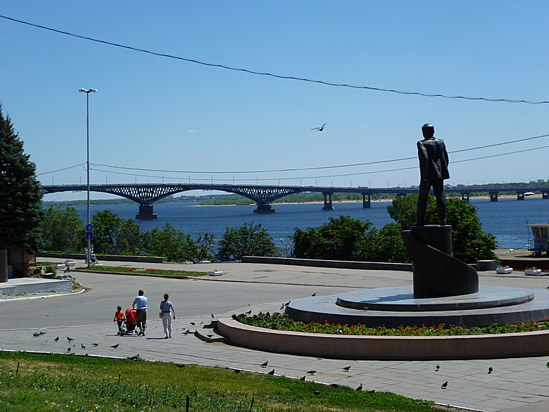 Саратовский памятник Ю.А.Гагарину– известная городская достопримечательность, которая находится на известной Набережной Космонавтов. Если точнее, то монумент располагается на берегу Волги в месте пересечения улицы Набережной Космонавтов, а также Обуховского переулка. Выполнена скульптура космонавта из бронзы. Важно отметить, что жизнь Героя Советского Союза тесно связана именно с Саратовом, который Ю. Гагарин посещал много раз. Статуя была отлита в 1990 году специалистами крупного Мытищинского завода художественного литья. Открытие памятника Ю.А.Гагарину, достопримечательности Саратова, осуществилось в 1995 году. На празднике присутствовало немало известных гостей, среди которых можно выделить Т. Филатова (автор скульптуры), лётчика-космонавта В. Ковалёнка, и другие знаменитости. Место для памятника выбрано удачно! Юрий Гагарин идёт по Набережной космонавтов, весь устремлённый в даль, весь — в будущем.