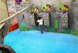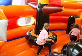 Здесь вы найдете - горки, мега-лабиринт и огромный сухой бассейн, где детям особенно нравится бегать, прыгать и кувыркаться! Батутная арена с поролоновой ямой вызовет восторг у самых активных попрыгунчиков. Большой и мягкий надувной батут будет интересен детям по-младше, где они могут безопасно покататься с горки и вдоволь напрыгаться. Огромный деревянный корабль подарит маленьким пиратам возможность пострелять из пушек и устроить настоящий морской бой! На веревочном аттракционе "улей" дети с удовольствием пролезут по всем пчелиным ходам. А на спортивной площадке - весело поиграют в футбол! На игровой площадке «Остров сокровищ» есть все для того, чтобы организовать и провести самый незабываемый День рождения Вашего ребенка! Веселые и отзывчивые аниматоры подстроят игровую программу под возраст и потребности Ваших гостей. По желанию, яркие и знакомые персонажи помогут торжественно вынести к столу именинный торт. Праздничный стол – неотъемлемая часть любого торжества! В наших уютных комнатах для праздника Вы можете организовать его без труда и хлопот.