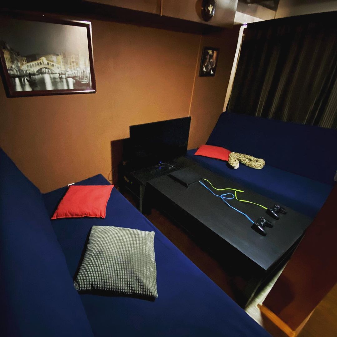 - Ps5 или одна из 8-ми комнат с игровой приставкой Ps4; кинозал с проектором Xiaomi отличного разрешения; Smart TV (с возможностью просматривать любимые фильмы и трансляции); настольные игры; кикер; чай; Wi-Fi С собой разрешено приносить еду и напитки. В честь Дня рождения дарят имениннику бесплатное посещение.