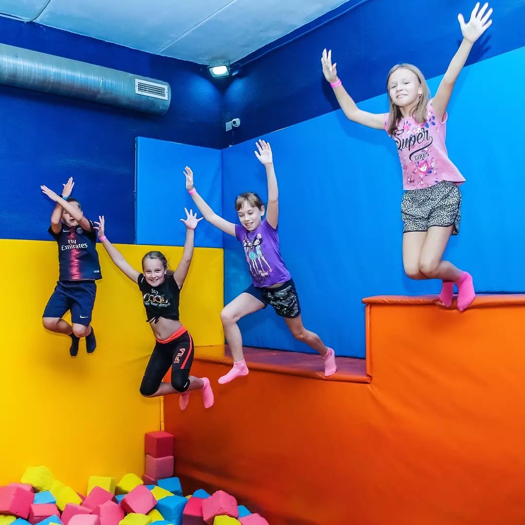 Батутный клуб COSMOS – отличное место для отдыха не только больших и шумных компаний, но и активным семьям, а также прекрасный способ полезно и весело провести свободное время! Такое времяпровождение не надоедает абсолютно никому и вовлекает в свою удивительную атмосферу все больше и больше любителей ощущения полета. Вы получите массу незабываемых и ярких эмоций и уж точно уйдете с отличным настроением. Ради Вашей безопасности зал разделен на три зоны по уровню сложности: детская (для детей от 2 до 9 лет), любительская (для тех, кто уже постарше) и спортивная, для тех, кто хочет попробовать более экстремальные прыжки. Детскую и взрослую зоны дополняют две поролоновые ямы площадью 25 кв.м. каждая. В клубе вы можете попрыгать более чем на 30 батутах, из них 6 – полупрофессиональных, 2 – спортивных, 4 – батута-горки, а также трамплин с воздушной подушкой.