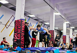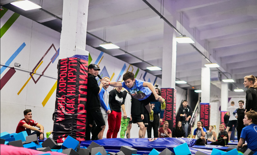 батутная дорожка; трамп для прыжков в поролоновую яму; скалодром; 14 больших батутов с разными сетками, как для профи, так и для новичков; специальное мягкое покрытие для отработки трюков на плоскости; поролоновая яма площадью более 60 кв.м; балансборд; комфортная зона отдыха для ожидающих; персональные комнаты для проведения мероприятий; профессиональный тренерский состав; персональные и групповые тренировки; открытые тренировки по разным акробатическим направлениям: трикинг, слэклайн, черлидинг и тд.