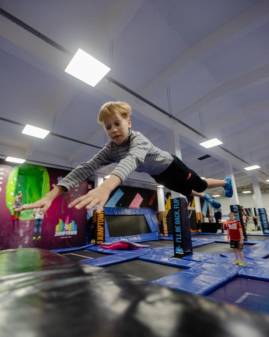 JUMP TOWN - батутный парк, спроектированный артистом цирка Дю Солей. Оснащение парка позволяет не только весело провести время всей семьей, но и тренироваться на любительском и даже профессиональном уровне. Только здесь :самые низкие цены в городе;
