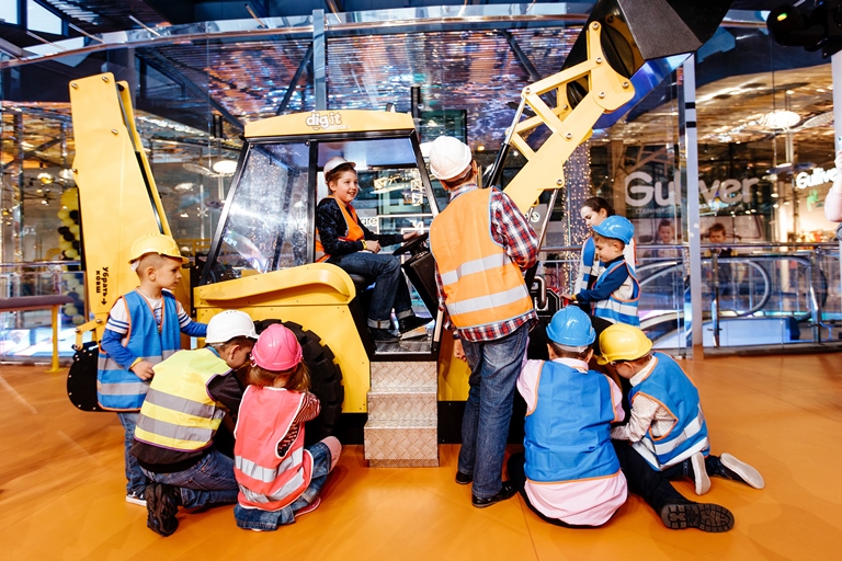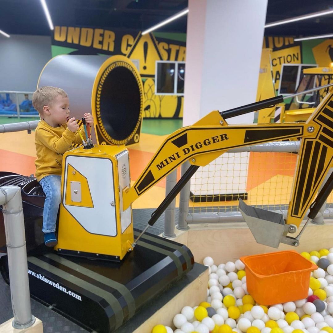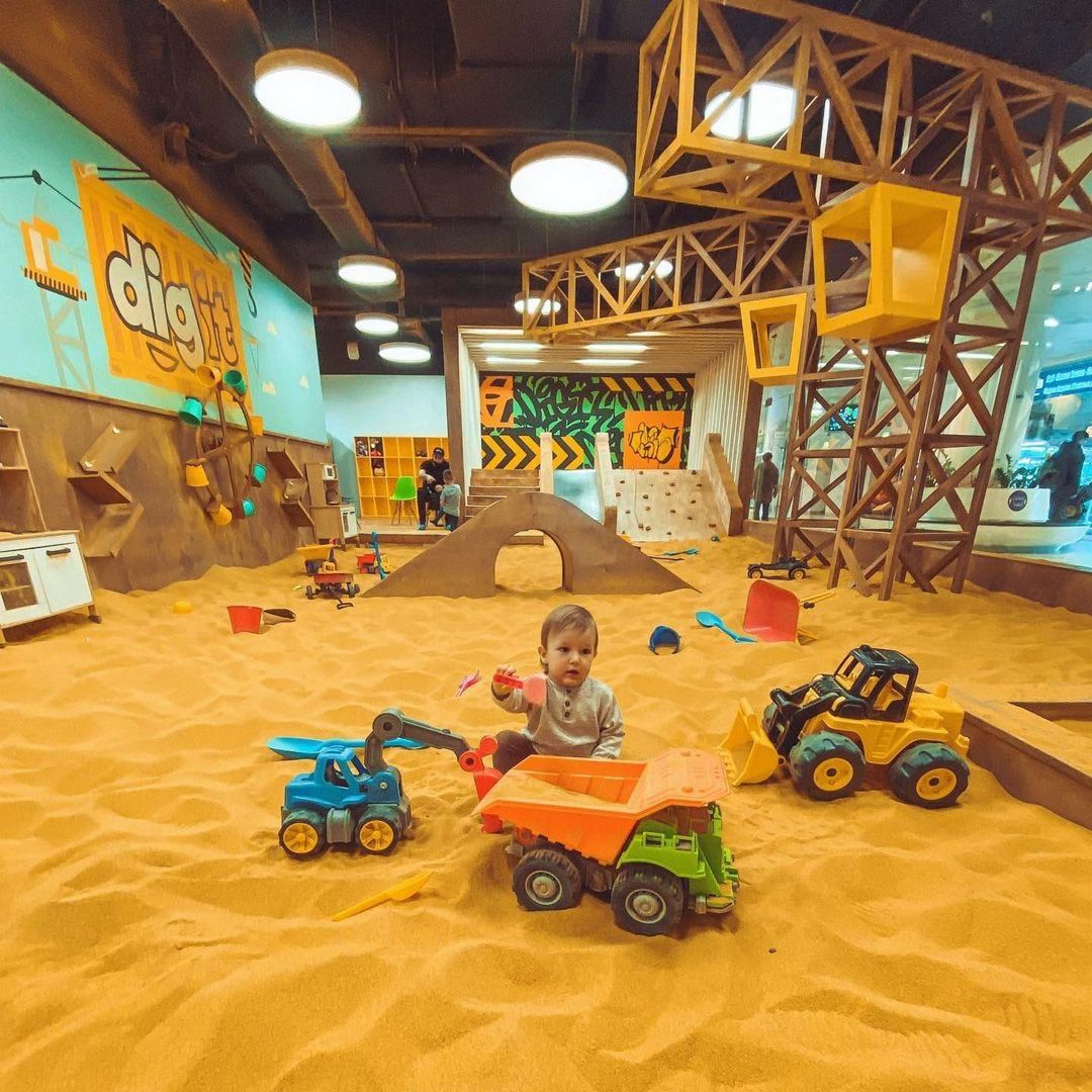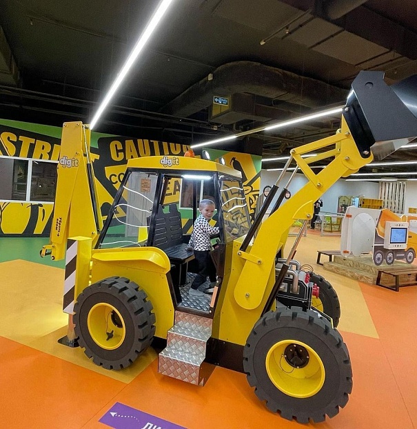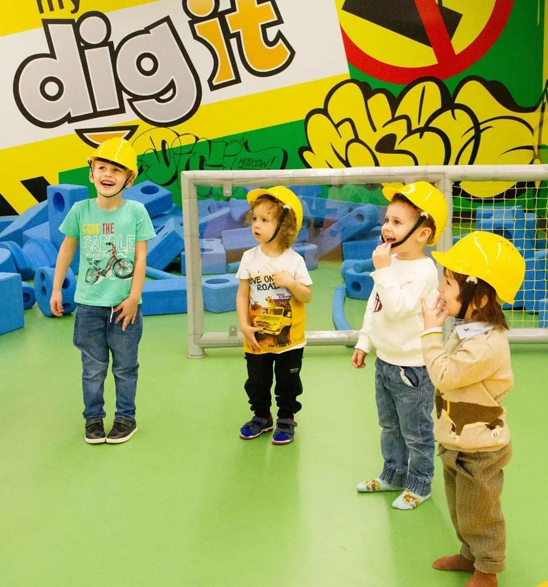 DigIt — это настоящее веселье в строительных касках! Удивительное игровое пространство создано по мотивам строительной площадки: копай, строй, лазай по туннелям, твори и создавай! Можно поиграть с радио-управляемым трактором, залезть в бетономешалку, управлять подъемным краном и даже водить настоящий экскаватор! Узнаешь, как строить стены и как работает строительное оборудование и даже попробуешь построить свой собственный город! Множество развлечений ждут тебя на самой классной строительно-игровой площадке в городе: Радиоуправляемые грузовики, интерактивное рисование, лабиринт, кирпичный конвейер, школа вождения, управление экскаватором, мини-экскаваторы, бетономешалка, конструкторы. Есть отдельная комната для праздников, множество игр, анимация и вкусная еда для особых случаев.
