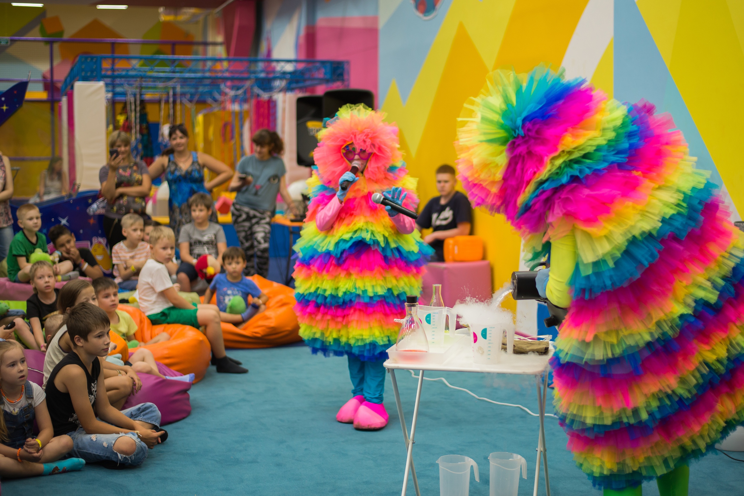 Широкий выбор костюмов и программ с любимыми героями, музыкальное оборудование, яркие шоу - наша арт-команда воплотит в жизнь любую идею! Для празднования дня рождения в нашем парке есть специальные банкетные комнаты, которые вмещают до 20 человек. Пока дети веселятся, взрослые отдыхают и наслаждаются праздником за праздничным столом.