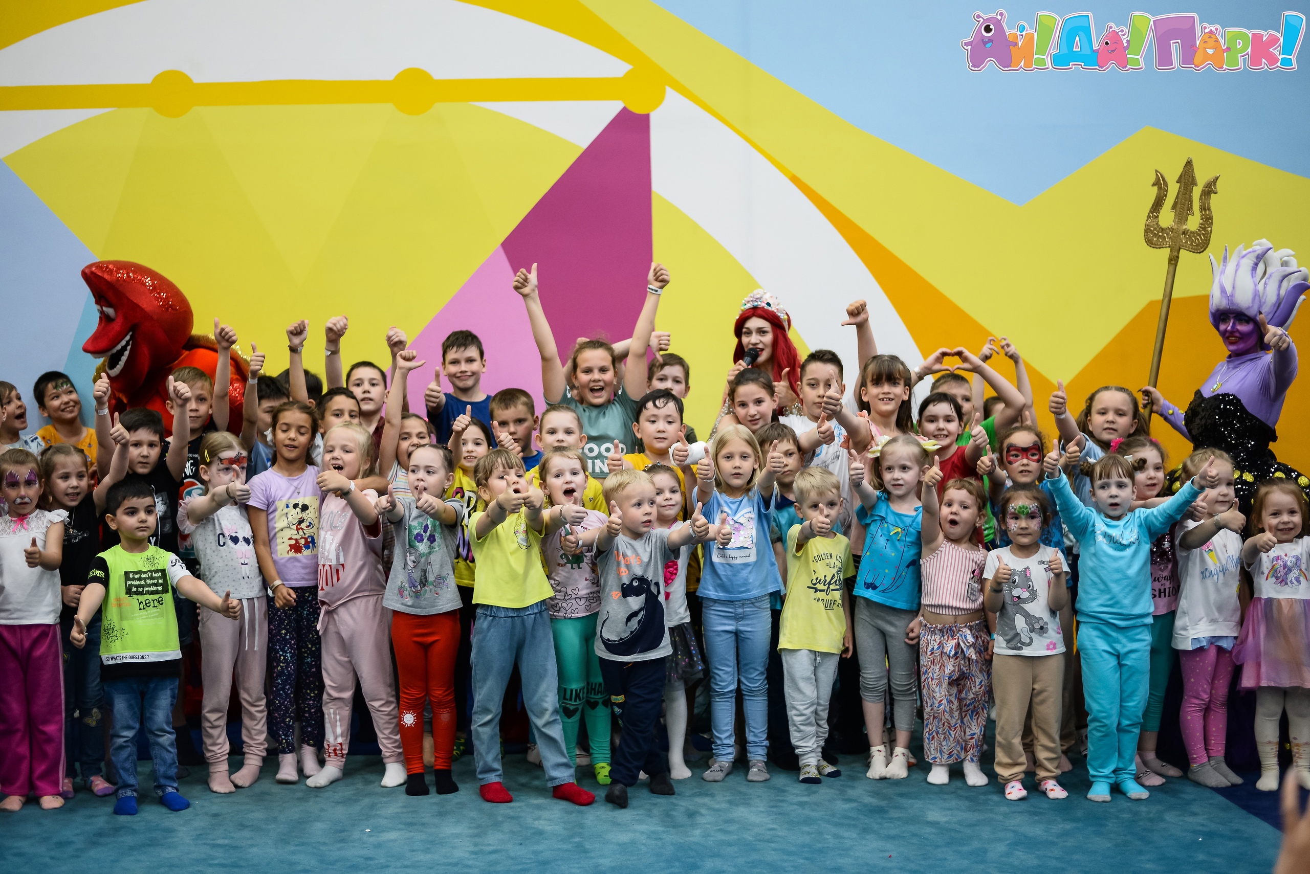 В нашем парке живут удивительные герои - Ай, Ляля, Рыжик и Горошек. Они очень дружелюбные, знают все о самых секретных уголках планеты Ай!Да!Парк! и никогда не дают скучать нашим гостям! В Ай!Да!Парке! больше 10 разных игровых зон и аттракционов для всех возрастов. Батуты, троллей, гироскутеры, малышковая зона, гигантский лабиринт и многое другое! В семейном Ай!Да!Кафе! Вы найдете угощения на любой вкус, которые понравятся даже малоежкам! Команда аниматоров Ай!Да!Парка! ежедневно радует маленьких гостей новыми активностями, мастер-классами и с удовольствием украсит ваш праздник!