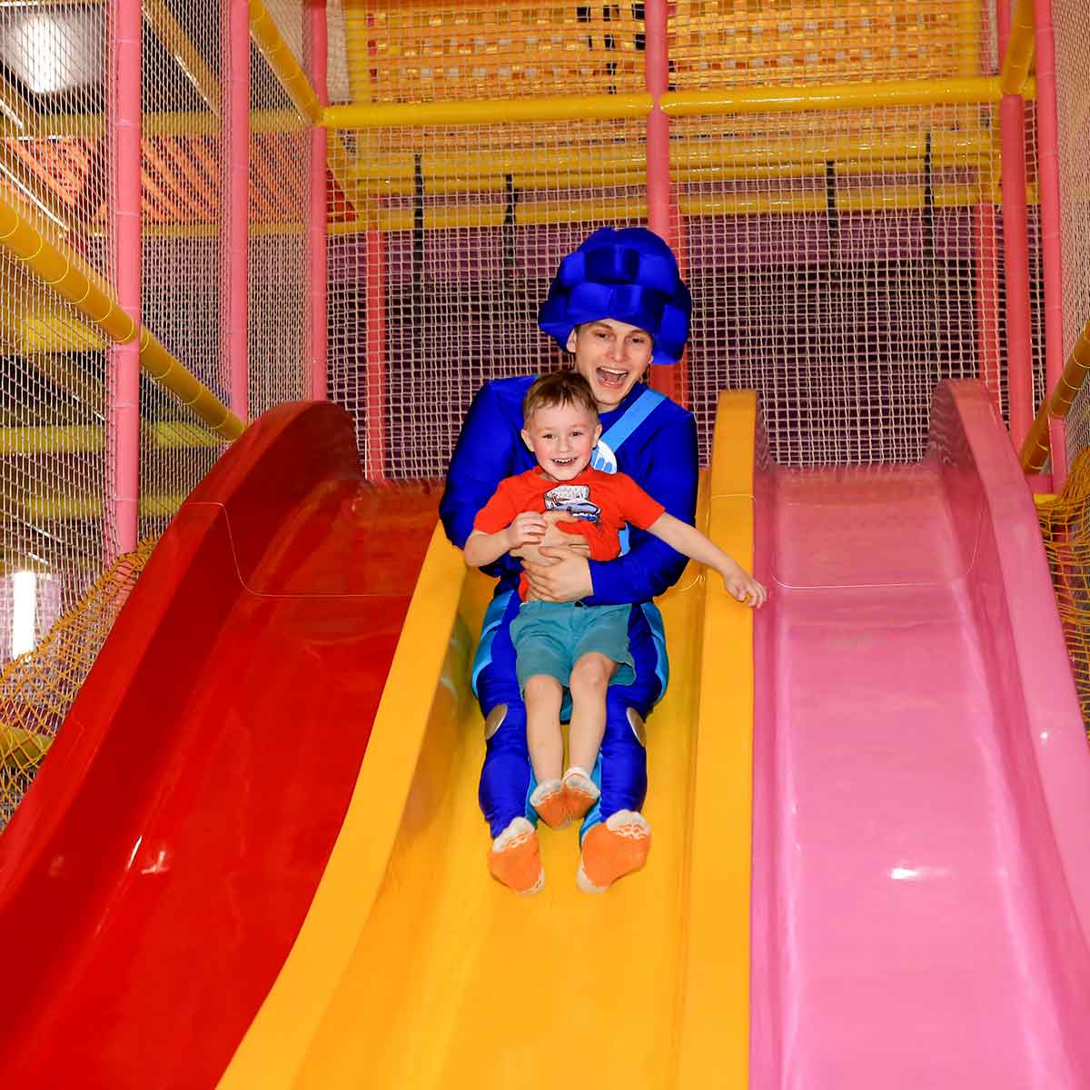 15 увлекательных детских аттракционов и команда весёлых аниматоров подарят малышу интересный отдых. Вам тоже будет интересно поиграть с ребёнком на площадке! Популярные аттракционы: 5-этажный лабиринт протяженностью 570 метров; 10-метровая тюбинговая горка; двухэтажный веревочный парк для детей. Безопасность в парке: электронная система входа-выхода из игровой зоны; аниматоры-дежурные бесплатно следят за детьми; безопасное немецкое оборудование. Семейное кафе на территории. Организуют семейный праздник, выпускной.