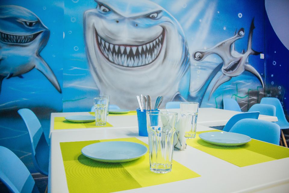 Здесь возможно не только бегать, веселиться и выплескивать свою энергию, но еще и весело провести свой День Рождения с анаматорами. К вашим услугам аттракционы: батутный комплекс и поролоновый бассейн; интерактивная комната; ниндзя-парк; огненные аттракционы "Вулкан" и "Улий"; канатная дорога; огромный игровой лабиринт с горками; пневматические пушки; тюбинговая трасса. В КрутоЦентре не обойтись без ресторана, ведь на игры нужно очень много сил!
