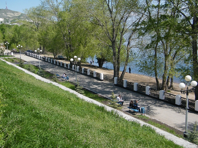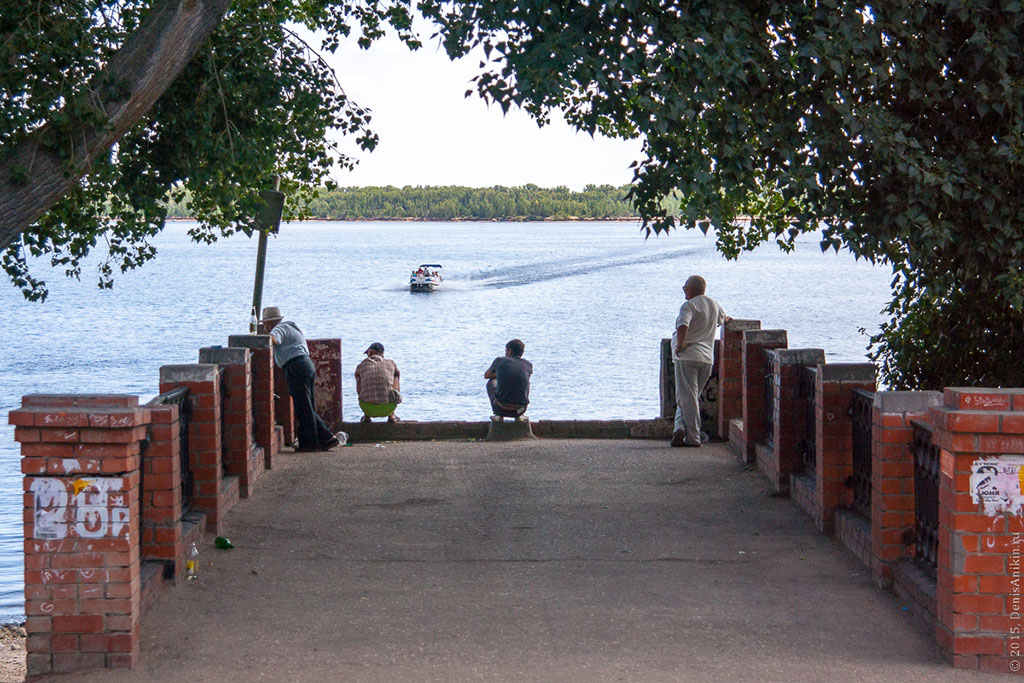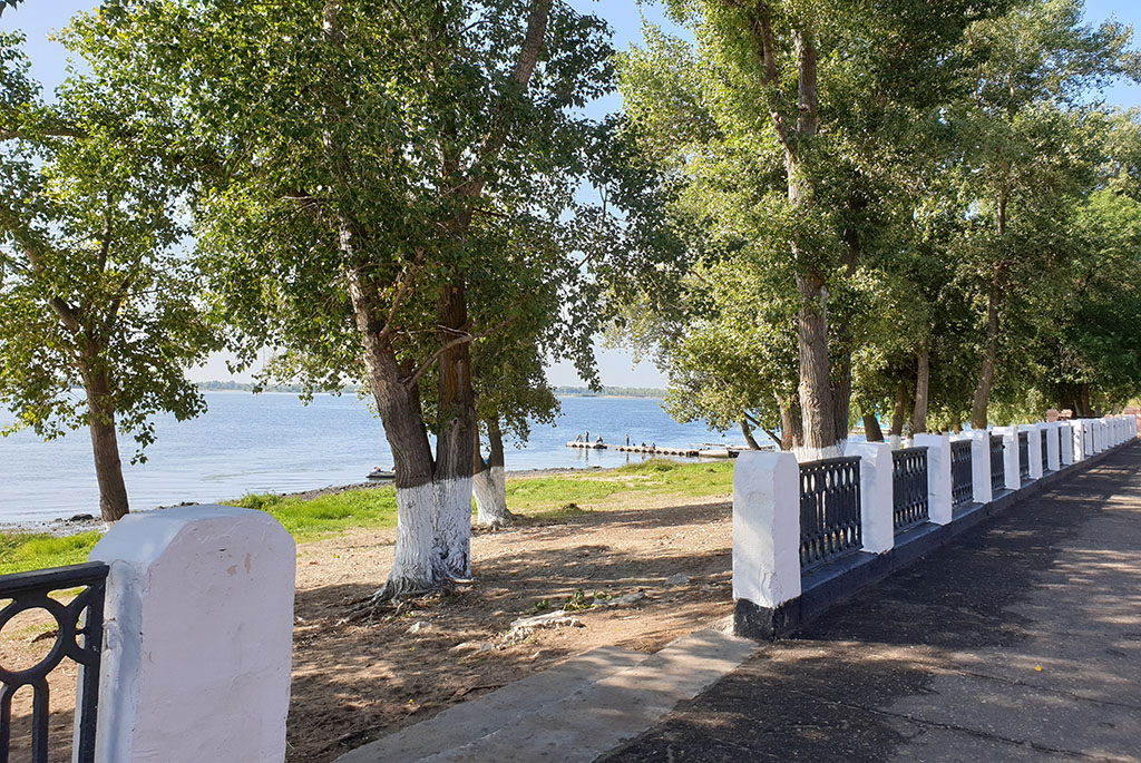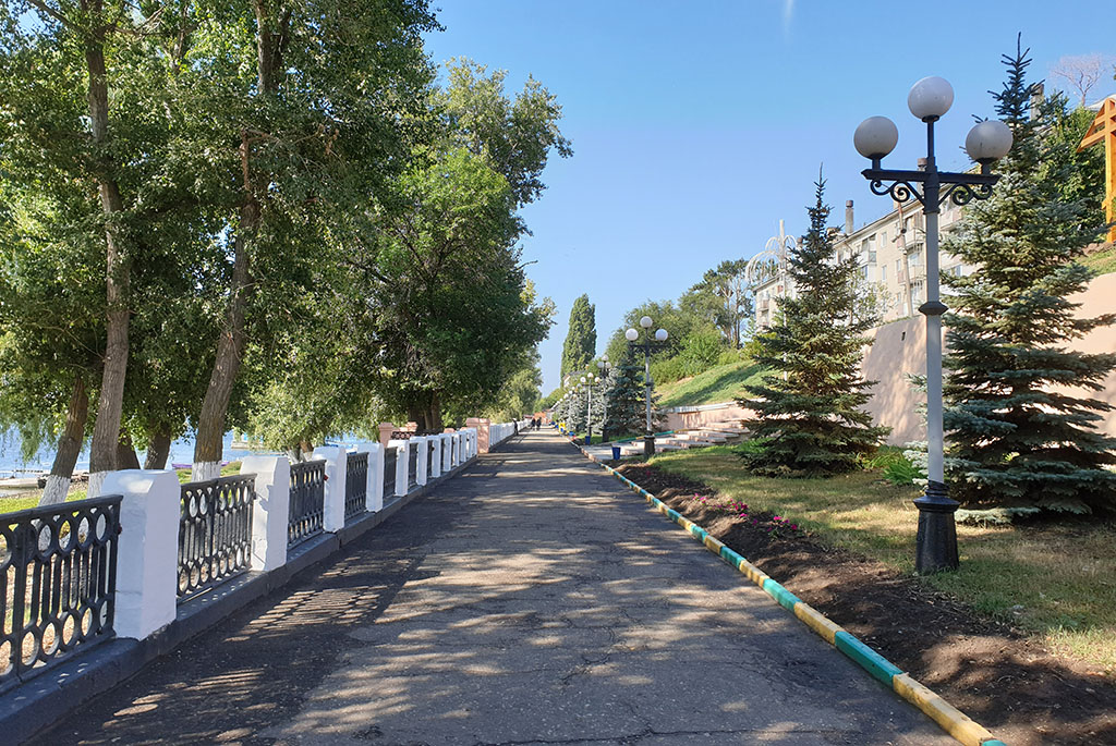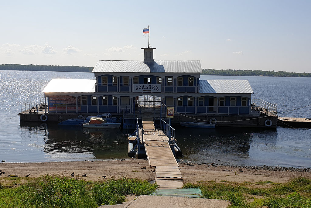 В Вольске очень уютная и красивая набережная, не величественная, не вычурная, а именно уютная. Здесь хочется просто посидеть и посмотреть на Волгу или походить вдоль берега, хотя сама обустроенная набережная небольшая, пройти ее можно за 10-20 минут в обе стороны. Волга тут широкая. Вообще это рыбные места и рыбаков обычно можно встретить в любом месте. От берегов она огорожена невысоким металлическим заборчиком. Вдоль ухоженных газонов на набережной проложены асфальтированные дорожки со скамеечками и беседками. На набережной находятся памятник выдающемуся советскому государственному деятелю К. Е. Ворошилову, стела города с датой основания и всем известный памятник посвященный матросам и бойцам Вольской Красной флотилии. Он был установлен в 1976 году, его автором стал скульптор Георгий Эпов. Вдоль всей набережной расположились стоянки частных маломерных судов или попросту лодочные станции. Здесь же причал для теплоходов, слева от него стоят катера и лодки, которые летом перевозят людей на пляж, расположенный на острове напротив города. В центральной части ступеньки поднимающиеся от набережной к бульвару и дальше к пешеходной улице Революционной идущей по всему центру Вольска. Первое, что видел путешественник, проезжавший по Волге в Вольске – это набережная. В навигацию она была самым оживленным местом города. Крупнейшие пароходные компании: «Кавказ и Меркурий», «Русь», «Самолет» и др. имели в Вольске свои конторы и пристани. Волга являлась основным путём и для грузового транспорта, перевозившего хлеб, лес, цемент. В 1891 г. у Вольска было 5 пароходных пристаней, в начале ХХ в. – 8. Кроме этого тут же размещались 18 лесных пристаней и 5 живорыбных садков. Активно действовала переправа через Волгу. Все это принадлежало городу и сдавалось в аренду.