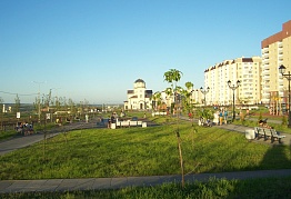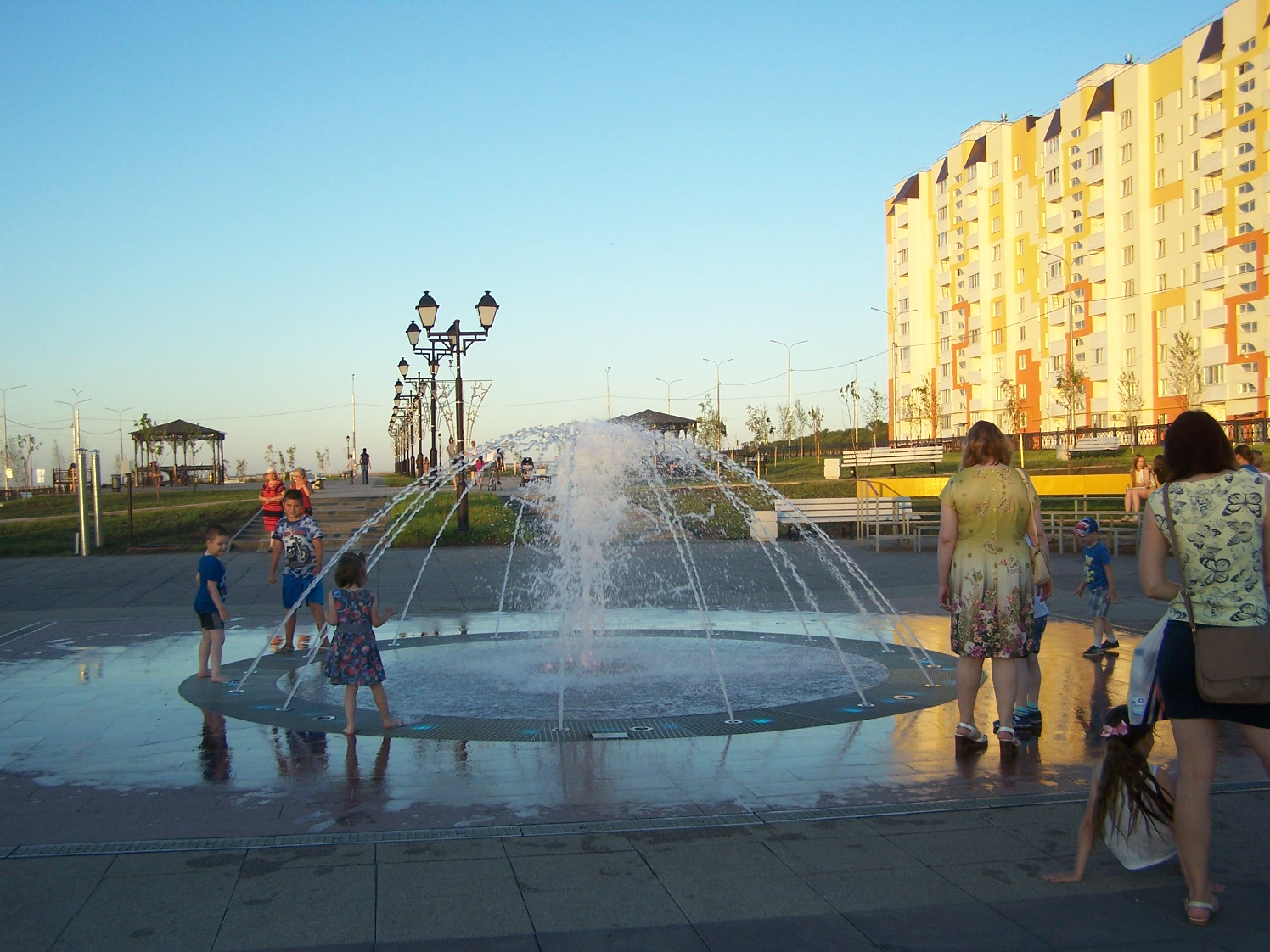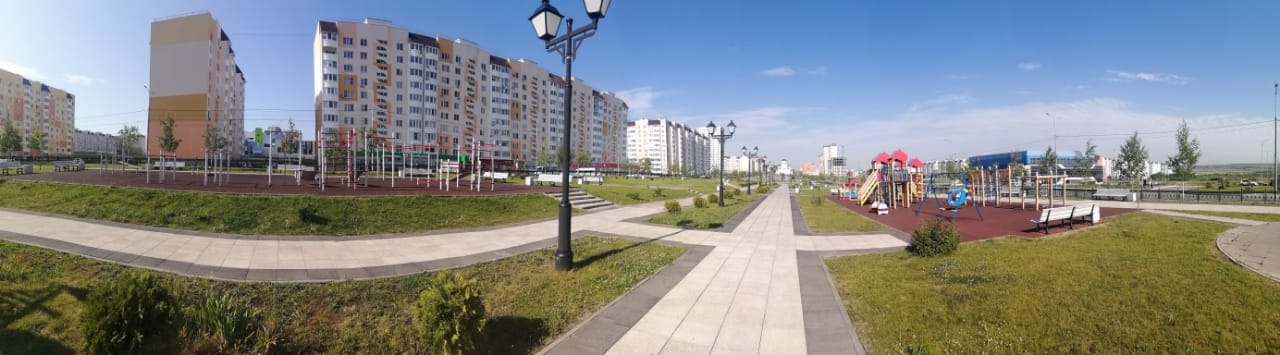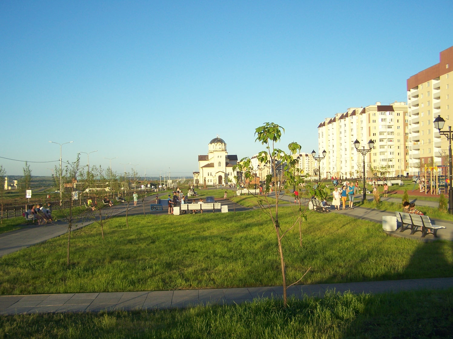 Очень длинный бульвар, достаточно новый, много детских и спортивных площадок, фонтаны, церковь, прокат самокатов, беседки для пикника с мангалами в конце аллеи, современный туалет