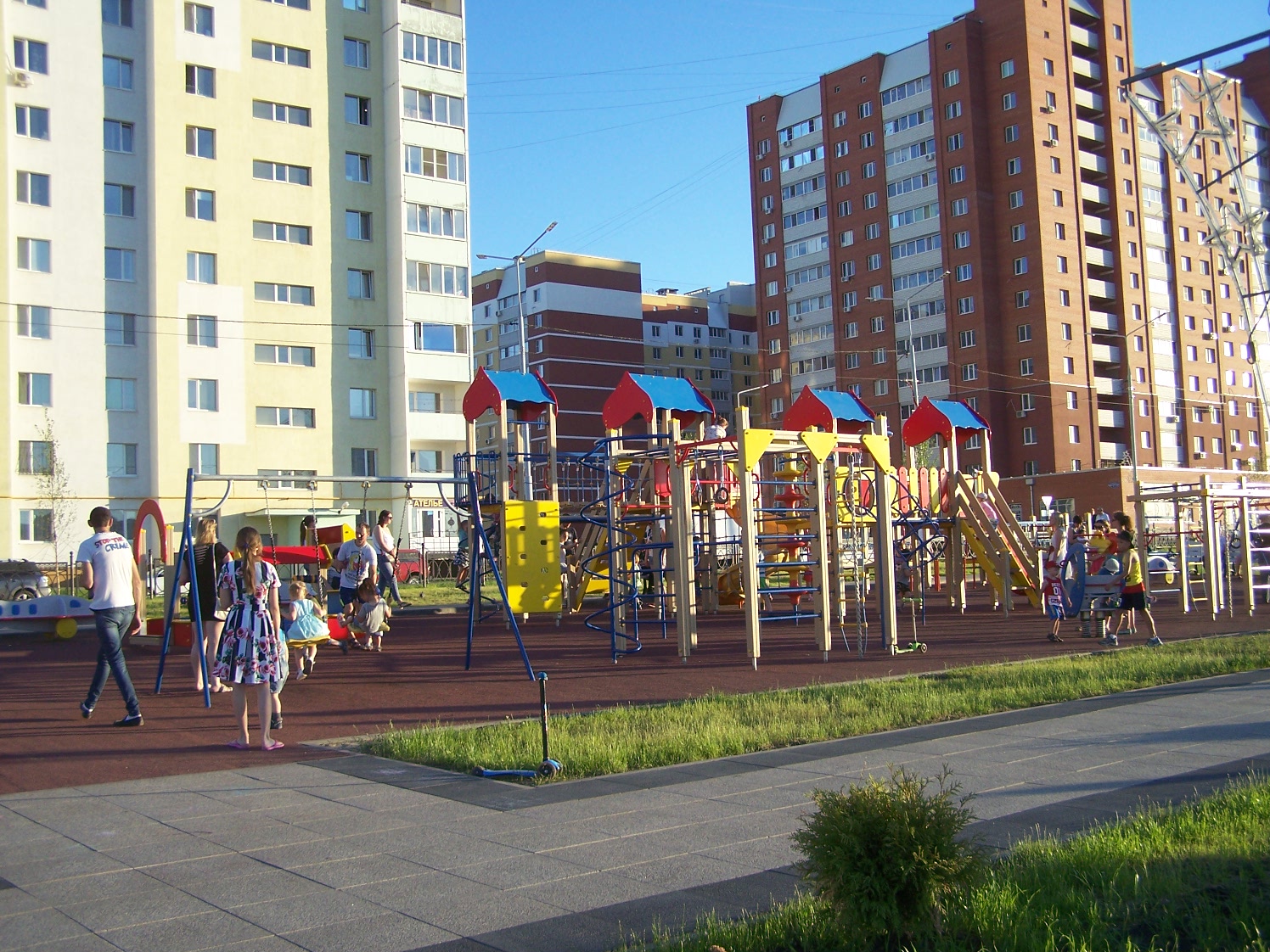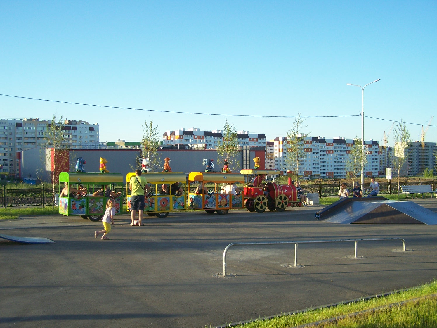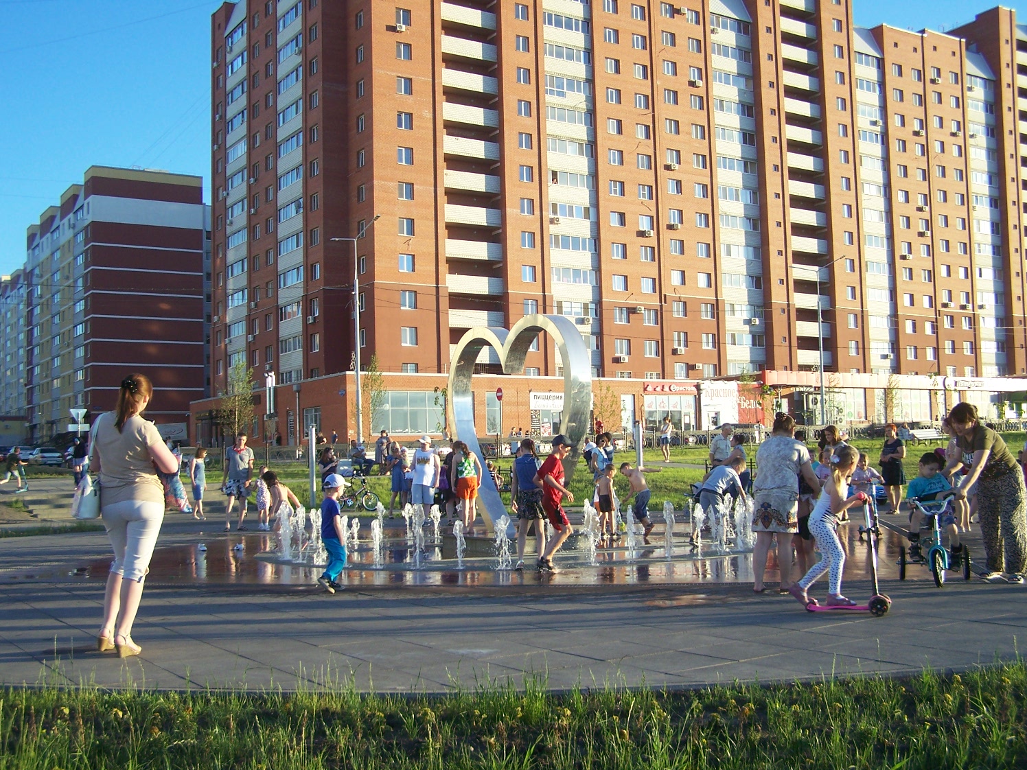 Очень длинный бульвар, достаточно новый, много детских и спортивных площадок, фонтаны, церковь, прокат самокатов, беседки для пикника с мангалами в конце аллеи, современный туалет