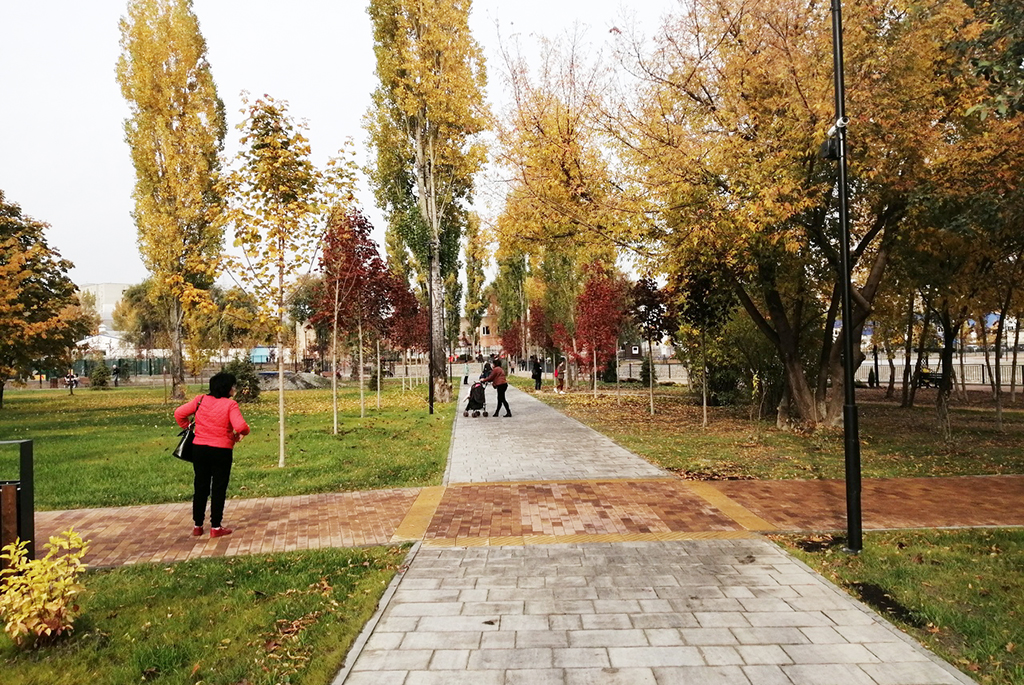 Сделаны спортивные площадки для настольного тенниса, волейбола, занятий на тренажерах, оборудован скейт-парк и установлена игровая площадка для детей разных возрастов.