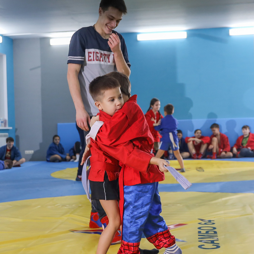 Самбо — наука побеждать! Это действительно так! А ещё самбо – самый интернациональный вид, потому что включает в себя элементы наиболее эффективных приёмов и тактик различных единоборств, боевых искусств и народных видов борьбы многих стран мира! Цель самбо, как и любого другого вида борьбы – одолеть соперника. Сделать это можно в результате чистой победы или – осилить оппонента по баллам. В клубе ведётся активная спортивная деятельность! В клубе ведётся активная спортивная деятельность! Что это значит? 1. у ваших детей будет возможность участвовать на соревнованиях;2. повышать свою квалификацию: получать разряды; 3. найти много новых друзей; 4. путешествовать по стране; 5. добиться впечатляющих результатов! Не откладывайте спорт «на потом»! Приучайте его любить с самого детства! Первое пробное занятие бесплатно.