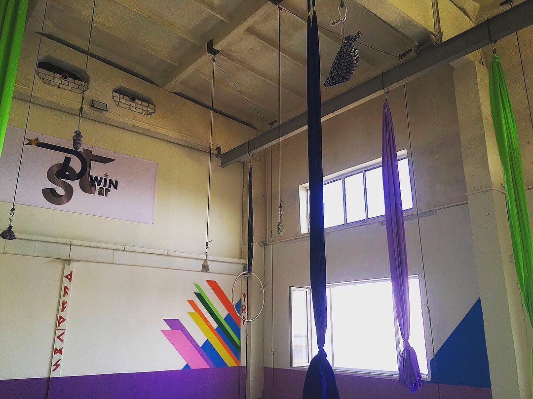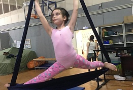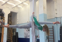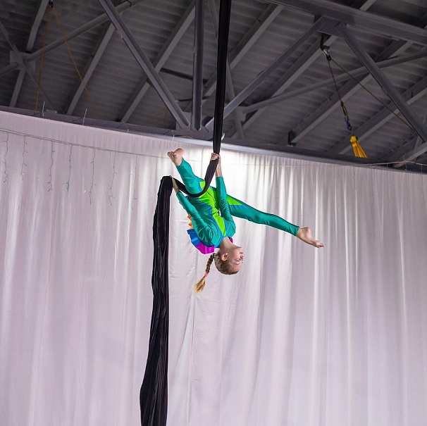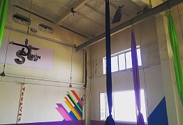 Тренера – аттестованные специалисты с опытом работы (в т.ч. с детьми), опытом участия в выступлениях и соревнованиях различного уровня и регулярно проходящие повышение квалификации у профессионалов жанра; Высота подвесов – до 7.5 м; Сертифицированное профессиональное оборудование на 14 точках подвеса – как статичных, так и регулируемых по высоте. Таким образом, на них будет комфортно заниматься как и тем, кто только делает свои первые шаги в воздушной гимнастике, так и опытным спортсменам; Просторный светлый зал площадью 130 квадратных метров, из которого открывается живописный вид на Волгу; Большой выбор снарядов – воздушные полотна, воздушное кольцо, воздушные ремни, воздушные гамаки, гимнастические кольца, цирковые трости для эквилибра; Возможность аренды подвеса.